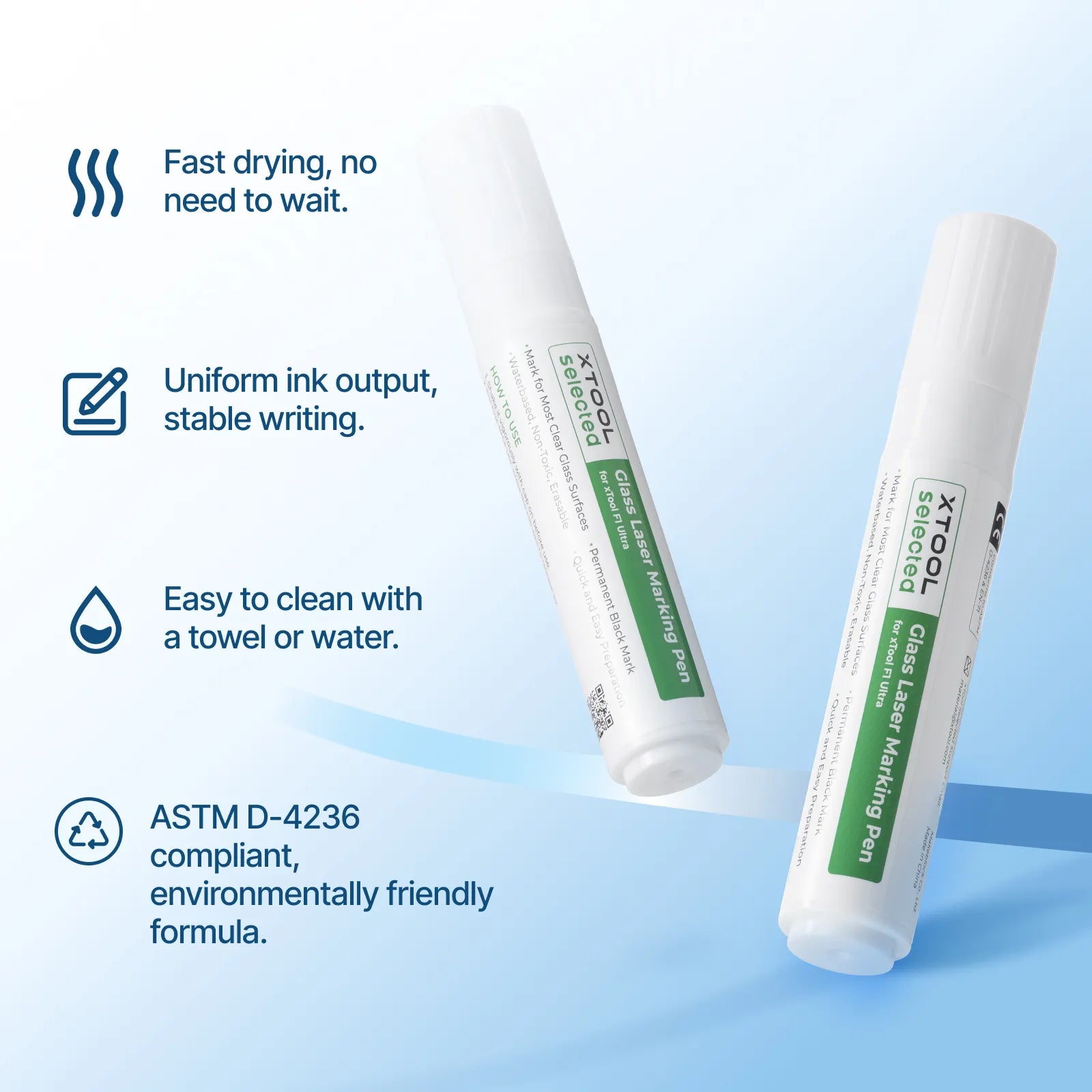 - A high-precision marking pen specially designed for glass. The ink is white when applied, but after laser engraving with the xTool F1 Ultra, it leaves a clear, permanent black pattern.