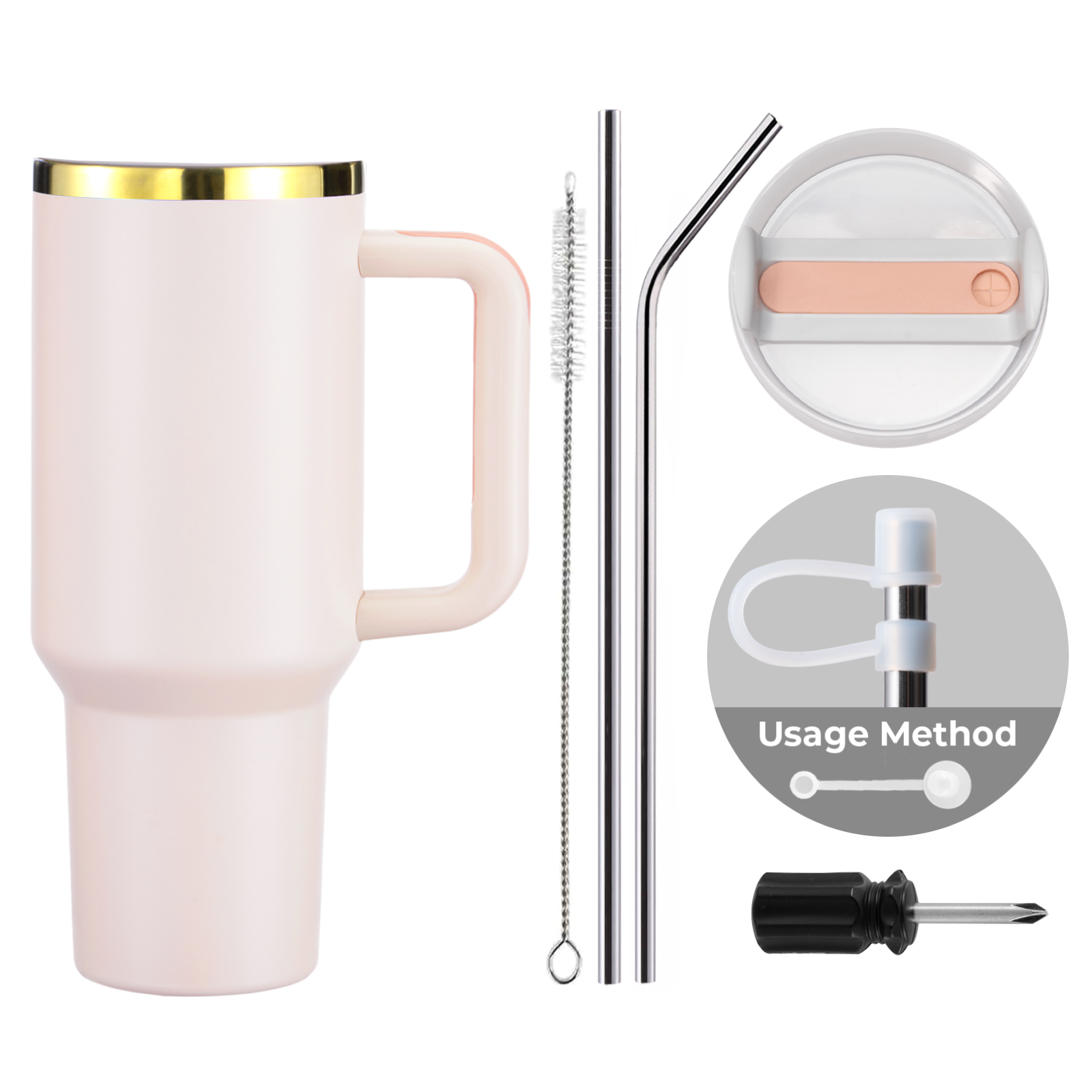 1 x Pink to Gold Stainless Steel Tumbler with Removable Handle (40oz) - Compatible MachineAll xTool machines