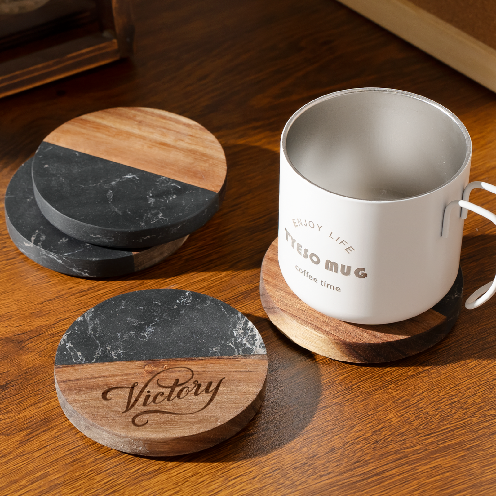 - Note: As wood and marble are natural materials, slight variations in grain and color may occur, adding to the unique charm of each coaster.