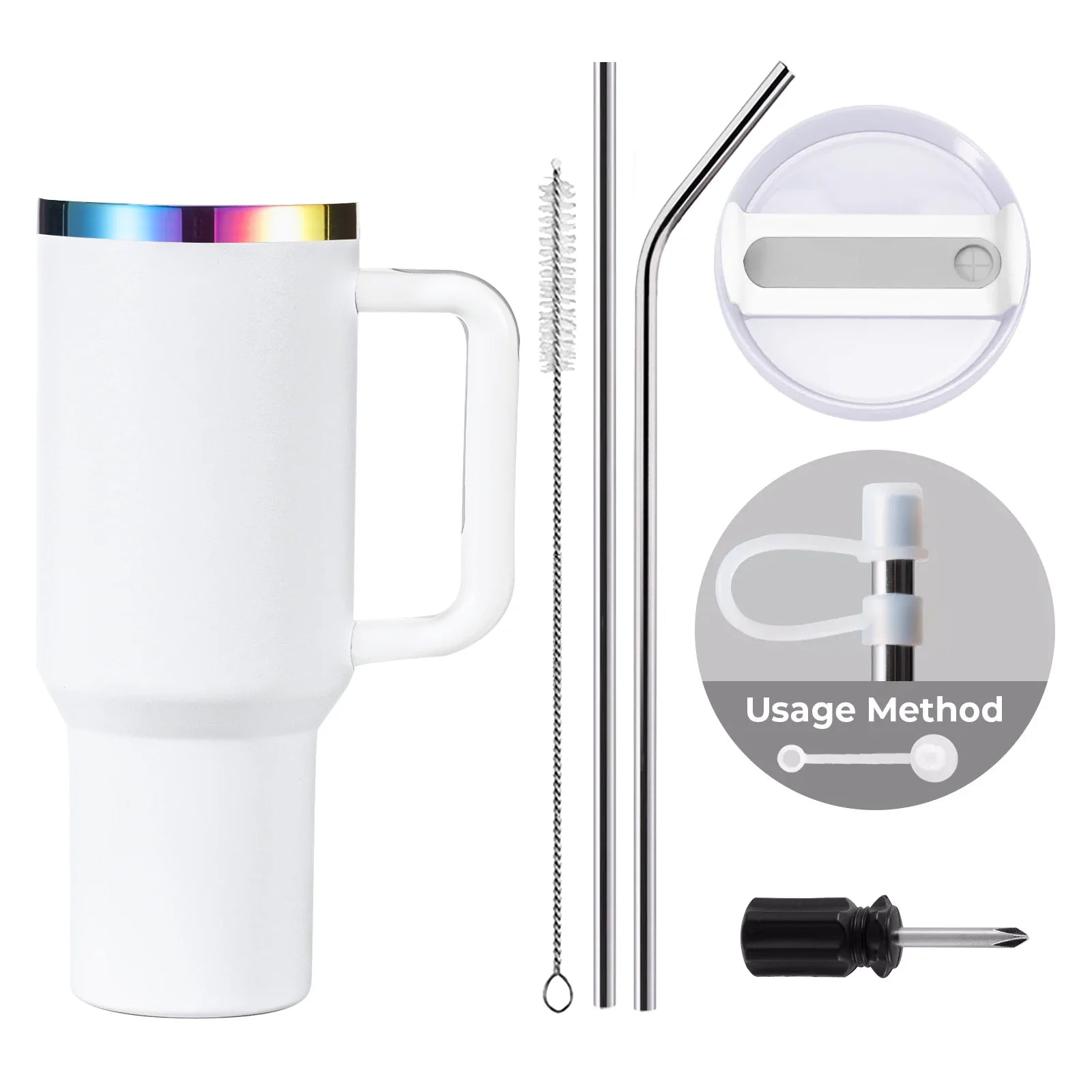 1 x White to Iridescent Stainless Steel Tumbler with Removable Handle - Compatible MachineAll xTool machines
