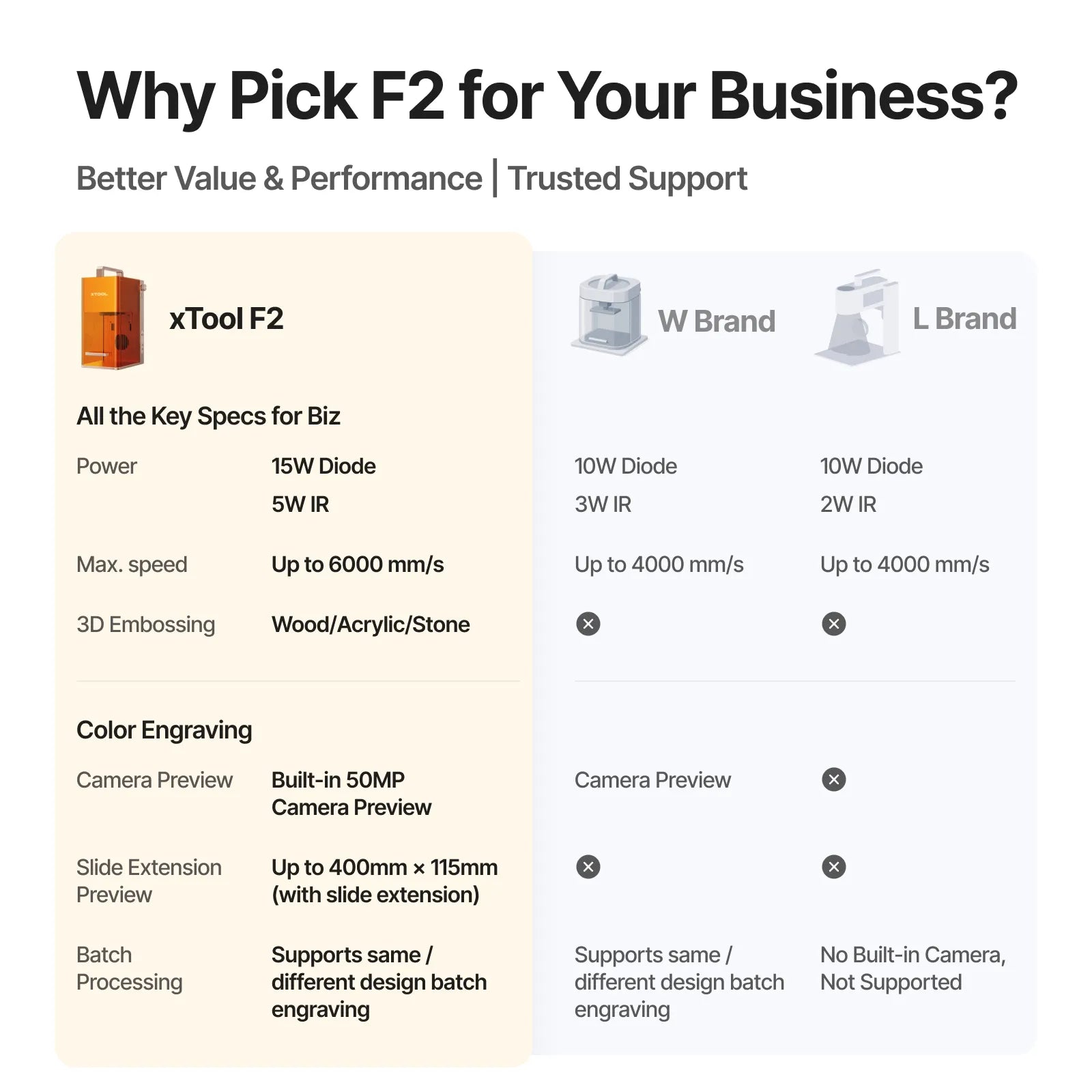 To boost order value or foot traffic, F2 is your go-to portable laser for fast on-site customization.