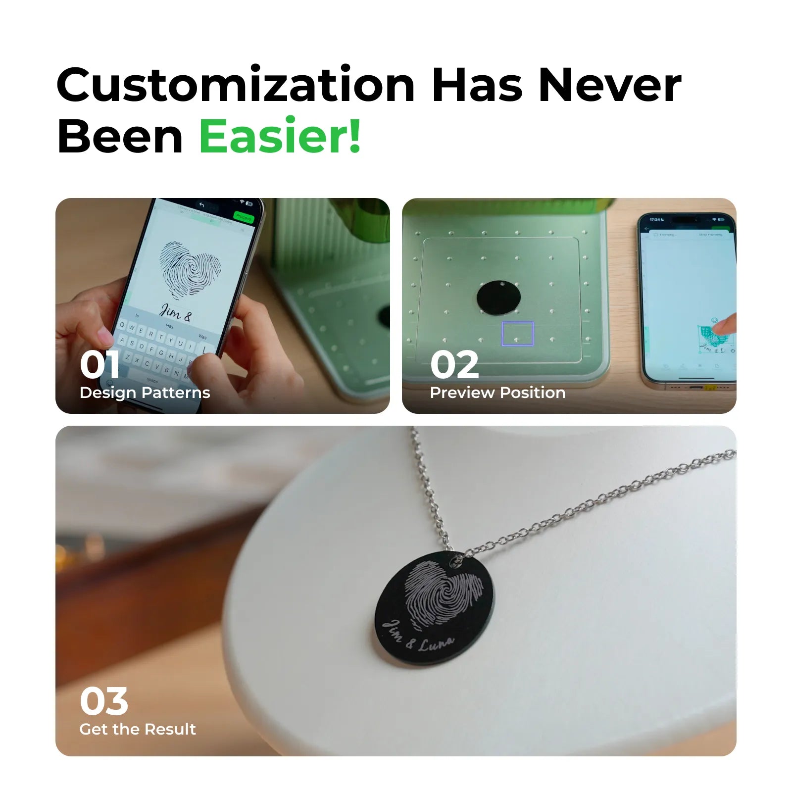 With a built-in fan and air purifier quickly extracting smoke and smell, you can engrave in private space or show it in public with a peace of mind.